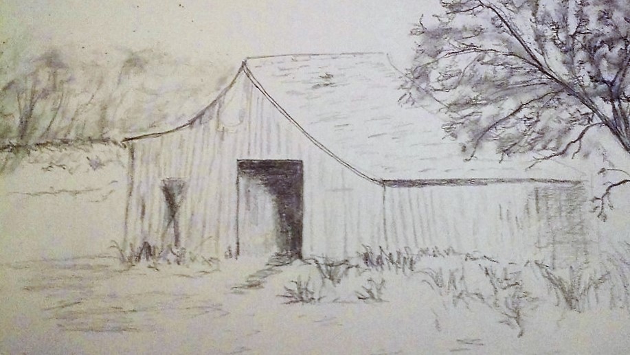 Occasionally I do surprise myself, like the time a friend posted a picture of an old barn on Facebook, and I fell in love with it. I knew I had to sketch it. I grabbed a pencil, sat down, and quickly made this freehand drawing.