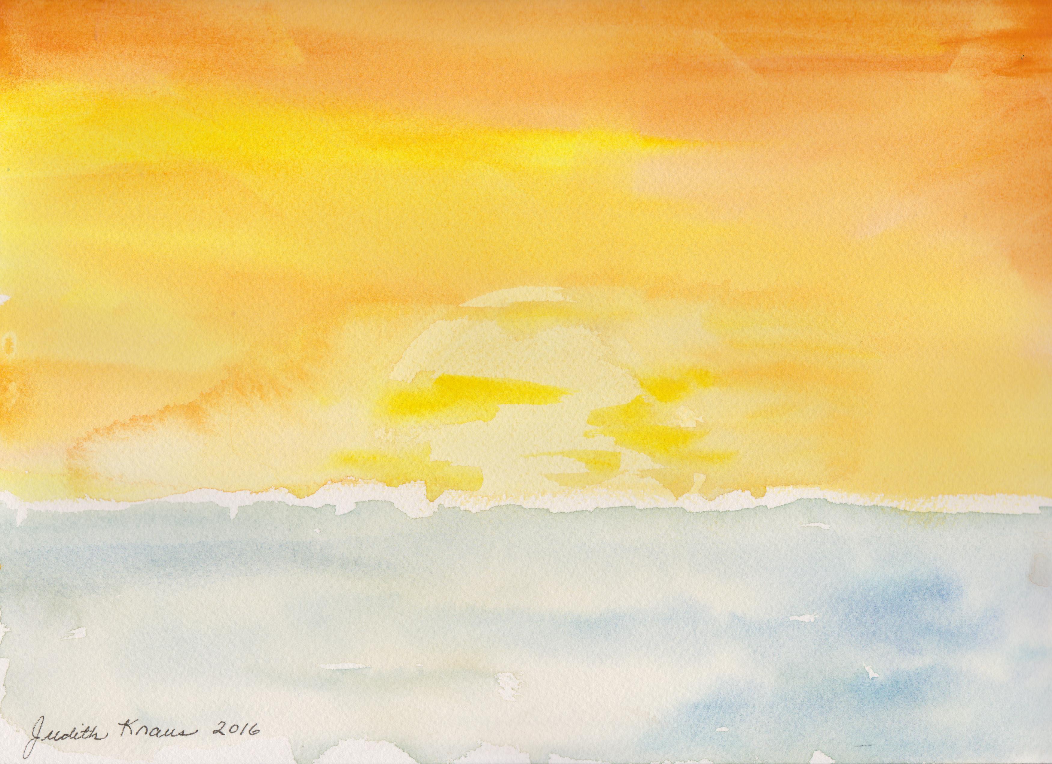 I finished off the sky with a yellow, glowing sun, then added in an ocean. I toyed with the idea of putting in a few palm trees, but I was happy with only the sky and the sea, so I smiled and walked away.