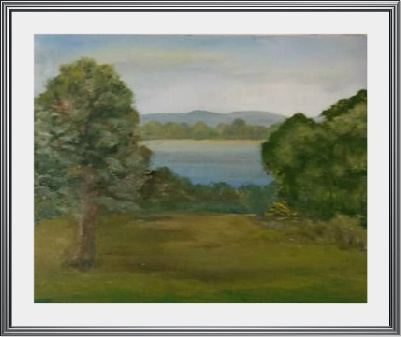 - The river. Unlike many of my rivers and lakes, this one does seem to lie flat upon the landscape. Many of my bodies of water seem to be rising up as though they’re threatening to overturn and spill everywhere.