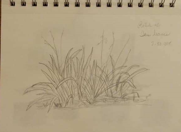 The same thing happened one morning last week when I sat out on our back porch and gazed at a patch of iris leaves. The blooms have long since gone, but I loved the shapes of the leaves — until I sat down to sketch them. “Oh, I can’t do this,” I told myself. “It’s too overwhelming.” The voice inside my head said, “Do it anyway. Just do the best you can.”