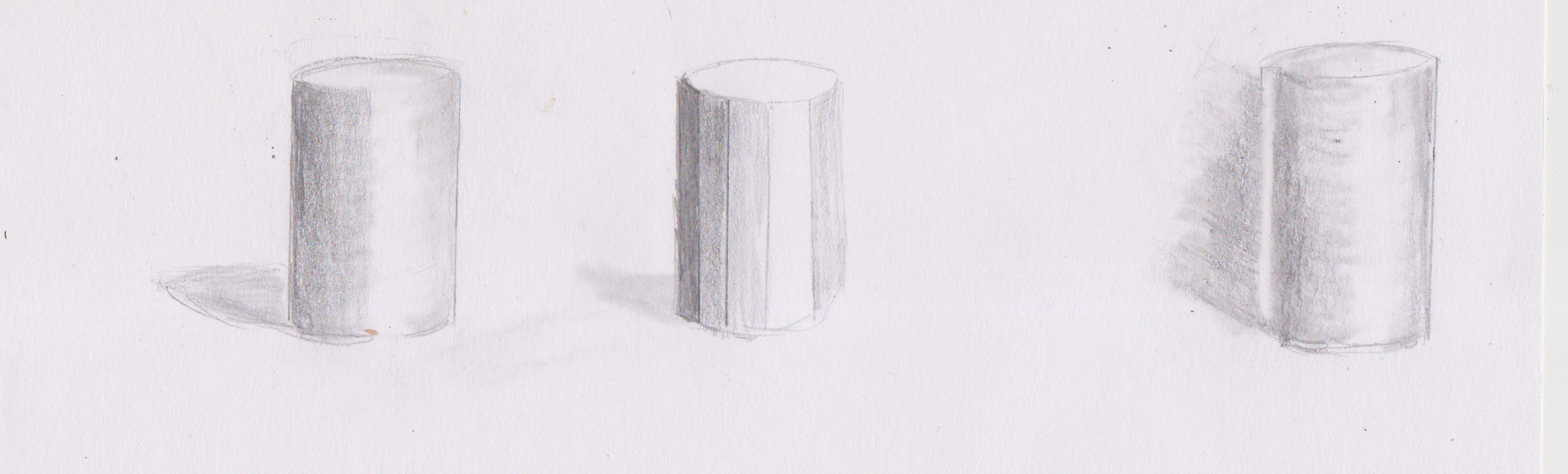 Today’s practice lesson was a very basic one. Shading cylindrical forms. But there was more to it than just applying shading. The lesson — from Sketching and Rendering in Pencil by Arthur Leighton Guptill — involves more than just knowing where and how to shade.