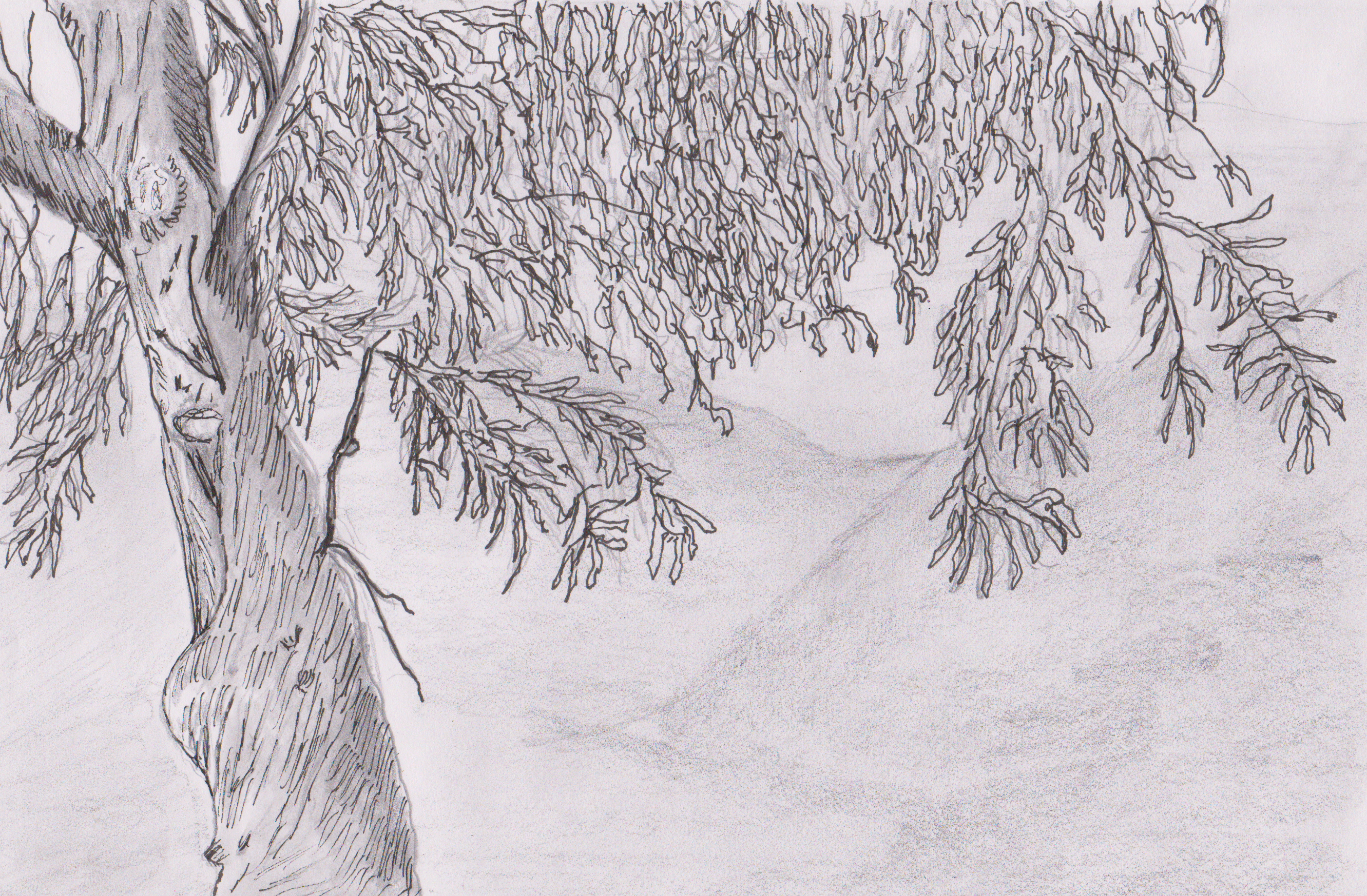 I was really, really proud of this one! The bark actually came out looking like it was supposed to, and I got most of the leaves the way I wanted. Having the layer of graphite down really, really helps me a lot.
