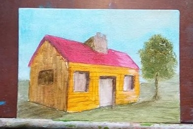 It’s a very small painting — 5″ by 7″ — which seems appropriate for a very small house. Once I finished the house — or the cottage, as I call it — I couldn’t resist adding in a tree.