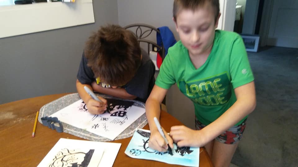 The silhouette project might be a bit advanced for their age group, but Carsen and Madox love art and are quite talented. They definitely enjoyed our project today.