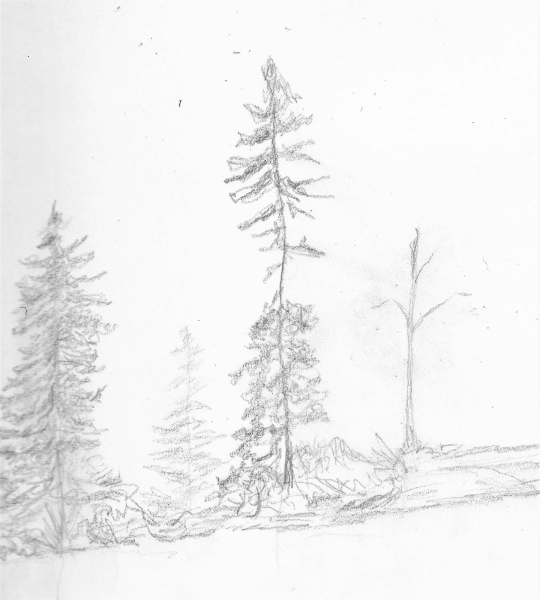 Obviously I didn’t spend a lot of time on this drawing, and don’t you love those crooked trees? I do. They definitely have character.