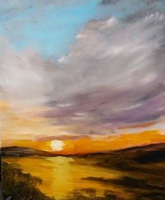 Here is a painting I completed yesterday based on the current “Live Lesson” series at The Virtual Instructor. It’s a sunrise in North Carolina.