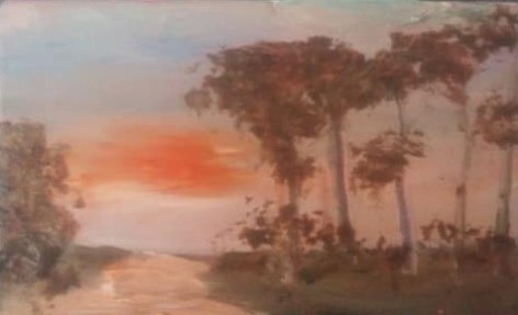 This isn’t a favorite, and obviously I spent very little time on it. Again, the warmth from the hot pink gesso clearly “heats up” this painting. It put me in the mind of a hot summer’s day, and a weary path through the countryside.