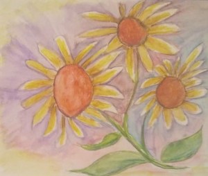 Accordingly, I grabbed a sheet of watercolor paper and did a 30-second sketch of three very primitive, very childish-looking sunflowers. There’s nothing close to accurate about these sunflowers other than maybe the fact that they have petals, stems, and leaves. There’s nothing precise, nothing realistic. Basically, this was exactly the sort of “terrible drawing” I once lived in fear of making. And now, here I was, gleefully drawing something so awful… well, certainly it could never be considered art!
