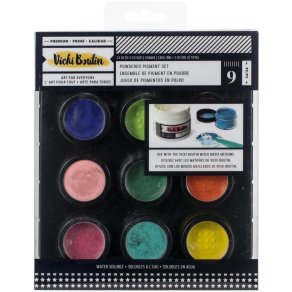 What I’ve had the most fun with, I think, is a set of gloriously-hued pigment powders. The set comes from Vicki Boutin by American Crafts.