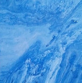 I’m beginning to enjoy acrylic pouring, and I’m starting to feel more comfortable with different methods and techniques. This one was a very simple “dirty pour” — with two different blues and white poured into a single cup. I added silicone oil, and I finished the pour by applying heat with a small butane torch.