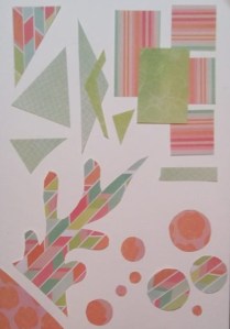 This aspect relates back to balance and also to harmony since it’s often suggested that we group similar shapes together. This was the approach I took this morning as I moved my cut-out shapes around. I grouped circles together, I grouped triangular shapes together, I put rectangles together, and then to set it all off, I added my weird organic shape.