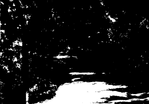 Today’s “assignment” was about beginning a painting with an awareness of where the lights and darks fall. So, I chose a reference photo from my “Inspirations” folder and began by making a computer-generated “notan” study. First, I desaturated the photo. Second, I reduced it to only two values. Here is the result: