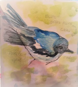 And then start sketching. Just put in a few shapes. If you’re outside and a bird you’re sketching starts moving around, just start another sketch somewhere on the page. Quickly capture the idea of what you see.
