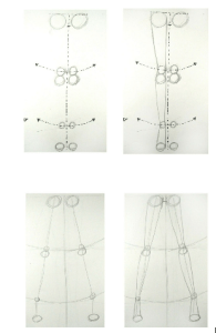 In the book I’m using for my “beginner’s crash course” — Master Fashion Sketches in 9 Days — this is illustrated with circles to represent the various joints and curves: