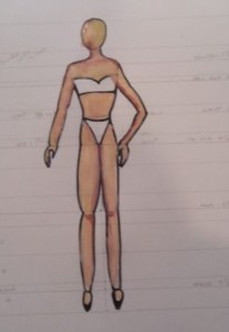 From the “Fashion School” video I watched yesterday, I learned that a croquis like this can be used for making “flat sketches” of garments. A flat sketch is quite similar to the paper doll outfits shown above — garments that are flat, not shown on a model. This is why Nick Verreos suggests outlining the croquis with a Sharpie. A fashion illustrator can simply place tracing paper over the croquis to see the different body proportions as they sketch.