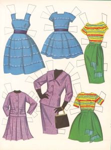 1. Thanks for the good wishes. I wasn’t artistic enough to make my own paper doll clothing as a child. I guess that’s why I’m having so much fun with it now. I did design and make doll clothes, though.