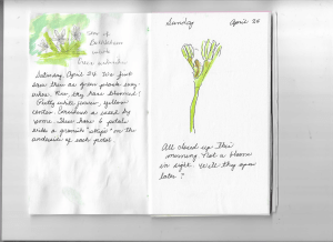 NOTE: Yes, indeed, the blooms opened again as the morning grew warmer. This brings up another good point in favor of nature journals. A nature journal inspires our curiosity. I naturally want to know more about what I see and draw. I’ve learned a lot already.