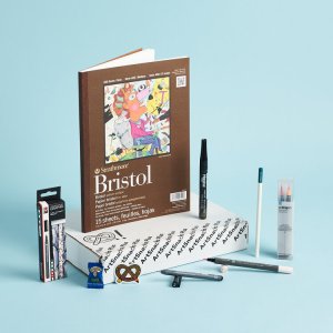 This subscription has two plans — a basic box ($25.00 per month) or a premium box ($35.00 per month). It features “hand-picked art supplies” and an inspirational piece of art. In browsing around, I wasn’t able to see what the current boxes contain, but I did find this information for a previous “premium” box. The theme for that particular box was “Unique Watercolor”, and the products have a retail value of over $50.00. There’s also a link to an instructional video.