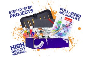 This subscription service says it is “great for beginners, teens, and all aspiring artists who want to try something new.” In other words, it’s a bit of an “art starter” kit. The price for their monthly box is $24.00. What’s included? According to their website: “What you see is what you get”, and “what you get” includes “an awesome selection of hand-picked art supplies that are all related to one another for you to create a project.” Their site also say the “recommended age” for the box is 7+, so again, this is geared more to young artists who want to try a few new things.