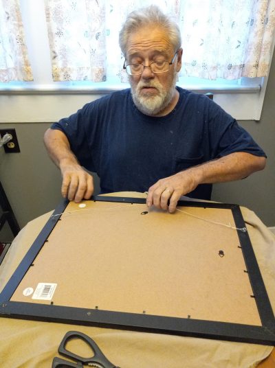 I’m grateful for all that he does to help me. Framing paintings for art shows is one thing I’m sure he never expected to be on his “honey-do” list. I certainly never expected to become an artist. But here I am. Or, I should say, hereΒ we are, working together to get my oil paintings ready for display.