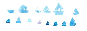 In between washes, I used a #8 round brush (with natural bristles) to practice painting sailboats. They weren’t nearly as simple as they seemed.
