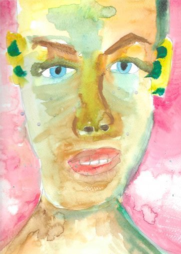 It’s definitely no work of art. It was, however, cathartic in its own way. I didn’t really concern myself with trying to create shadows or facial structure with colors. I was too busy flinging it on. This was done using my little “pocket set” of Cotman watercolors.