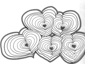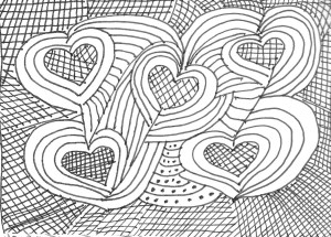 See what I was doing here? I was being deliberate, I was planning. I was taking control. And how did it all turn out? Here’s my second “doodle-drawing” of “Cross-Hatched Hearts.”