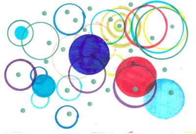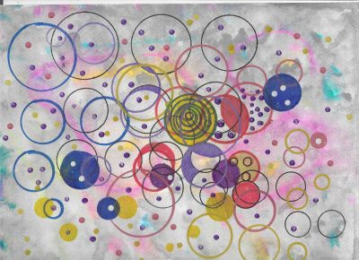 Another “circle drawing” was this, done once again using a stencil and a variety of markers. This time, I drew the circles on an abstract watercolor background I’d made.