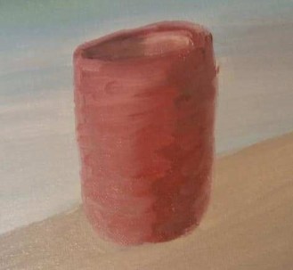 At this stage, I had not yet painted any shadow, but all the same I was proud of this pot! It’s lopsided. I know this. But, all the same, it’s recognizable as a pot. You can see that it’s rounded, and I think you can see, too, that this cylindrical pot is hollow.