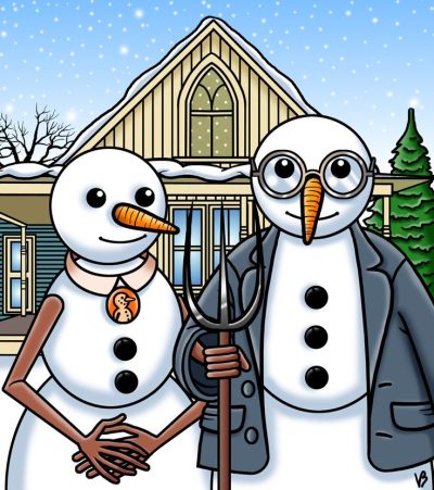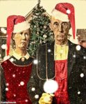 We’ve all seen the painting, not only in its actual form, but in many different parodies. Since the holidays are upon us, I couldn’t resist sharing a few “Christmas” versions of “American Gothic.”
