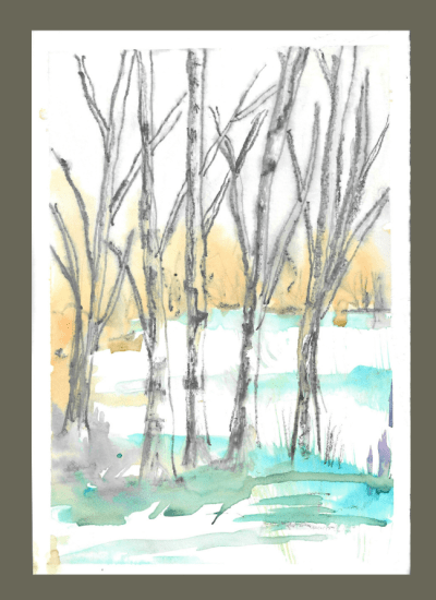 Here is today’s watercolor, Winter Birches.