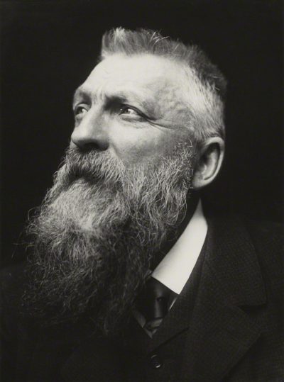 When conceived in 1880 in its original size (approx. 70 cm) as the crowning element of The Gates of Hell, seated on the tympanum, The Thinker was entitled The Poet. He represented Dante, author of the Divine Comedy which had inspired The Gates, leaning forward to observe the circles of Hell, while meditating on his work. The Thinker was therefore initially both a being with a tortured body, almost a damned soul, and a free-thinking man, determined to transcend his suffering through poetry.