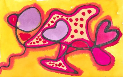 Anyway, on Day 7 I decided to use a Valentine theme. Better late than never, right? Of course, neurographic art isn’t about drawing so much as it is about expression. All the same, I wanted to create a few hearts. That’s how I began. But then, since the key element of neurographic art involves “rounding off any sharp edges”, I had to go back and “soften” those hearts. Some I did, some I didn’t, and all the while that question is going through my head: