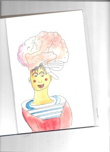 For just a bit more fun, I went back and added a bit of watercolor to my “brain-boy”.