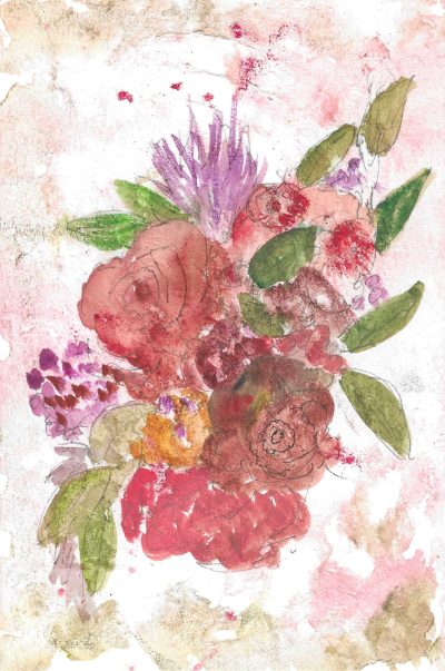 Now, as I work on more floral studies, I’ll be working, too, on improving my oil pastel techniques. I’ll probably also be doing more “loose watercolor” florals, and I might even try painting a bouquet with oil. I’ve played around with a few little “practice paintings” in the past, but nothing too fancy. I’m wondering if I might even be able to do a few floral studies with my new “finger painting” methods.