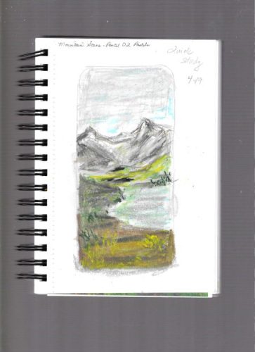 Later, however, I glanced over, saw this mountain scene and thought, “Where did that come from?” It was so lovely! I was shocked when I realized that I was looking at my own work. “I did that?” I blinked in surprise. Yes, indeed, from a distance, it looked good. Really good.