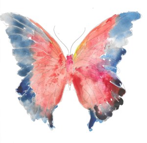 It doesn’t look like much — yet — and maybe it never will, but for now, here’s my butterfly with the first application of watercolor.