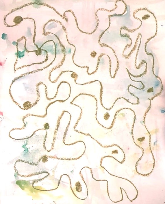 Oh, I should mention that while I was dabbling around recently, I had made a watercolor background, so when I chose to do this metacognitive drawing, I used it.