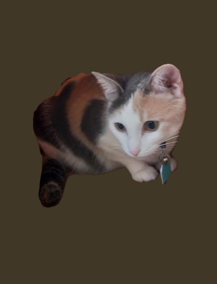 Another problem I encoutered is that removing the background takes the image “out of context”. You can no longer tell that this is a cat crouching down inside a bag, so rather than the drawing being a fairly good example of foreshortening, it looks more like a woefully misproportioned cat with a head too big for her body.
