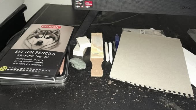 That’s why I started the day with a bit of cleaning up. I’d looked at all the pencils and other items that were on my desk and shook my head. Nope. Not going to let things get out of hand, I told myself. So I picked up my charcoal supplies and returned them to their box. I gathered up all the drawing pencils that were loose on the desk top and dutifully put them away. I organized the tortillons and erasers, moved a few other things around, and I felt I’d done something good.