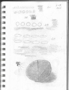 This is, in fact, the very first page of my very first sketchbook. If you look closely, you’ll see the date. June 9, 2015. This was the first day of my “drawing lessons” and what was I doing? Drawing and shading a sphere. Well, trying to draw and shade a sphere. I guess I have made a little progress over the years!