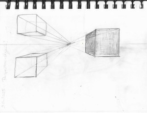 Today my drawing lesson to review was another tutorial on perspective, and yes, I know. Perspective IS important. There’s just no getting away from it. I realize this. If we want our drawings and paintings to have any semblance to reality, we have to understand — and use — perspective.
