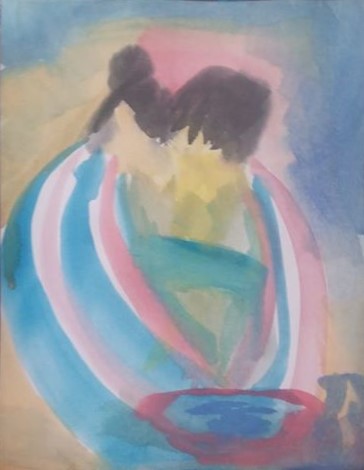 Later I made a series of very loose watercolors inspired by “The Child’s Bath”, including this one.