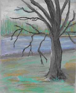 I was disappointed in the tree, but this was essentially a “play” piece, a chance to see what I could do with my oil pastels, and a chance to see if my chosen color scheme worked. I have to say that the palette is, well, different, and I think I like it simply because it is different, but maybe I’m a bit biased since I’m the artist.