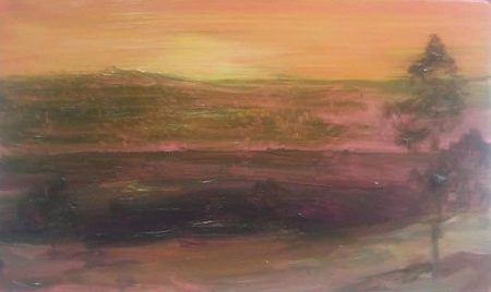 Over the last few days I’ve been using my hot bubble gum pink gessoed manila dividers for my tonalist landscape … More