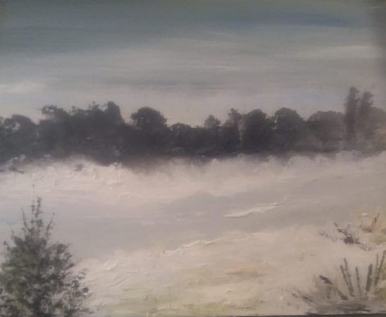 It doesn’t look too bad. From five feet away, my winter scene painting actually looks like a river covered with … More